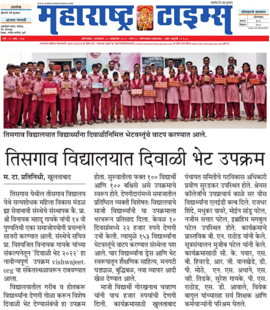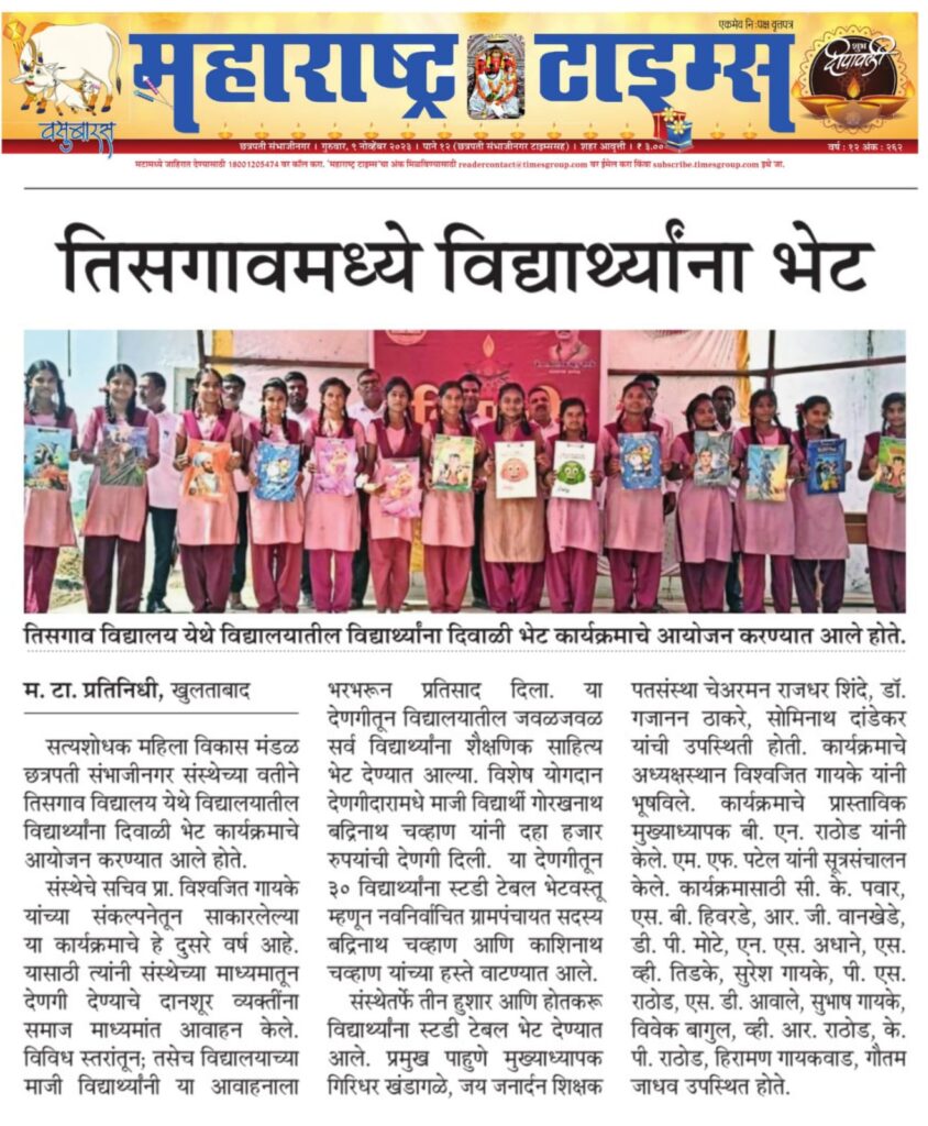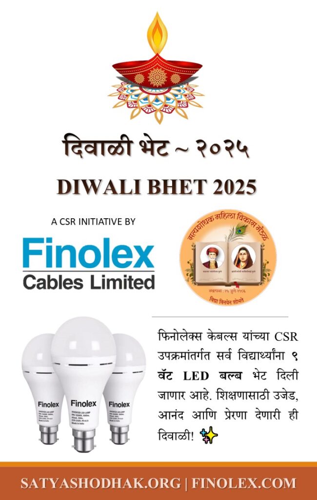 Satyashodhak Mahila Vikas Mandal proudly presents Diwali Bhet 2025, a sustainable celebration of light and learning, supported under the CSR initiative of Finolex Cables Limited. Scheduled for 14 October 2025 at 11 a.m. at Tisgaon Vidyalay, Khultabad, this event symbolizes the fusion of technology, compassion, and education.
